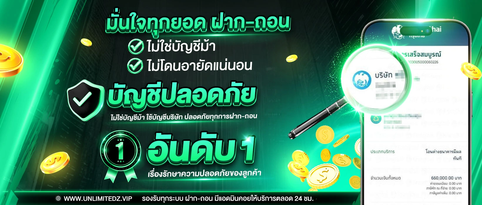 ตอบ : Unlimitedz โดดเด่นด้วยระบบธุรกรรมอัตโนมัติที่รองรับการทำรายการผ่านวอลเล็ตและธนาคารชั้นนำ โดยเน้นความรวดเร็วในการปรับยอดภายในเวลาไม่เกิน 30 วินาทีโดยไม่ต้องผ่านแอดมิน